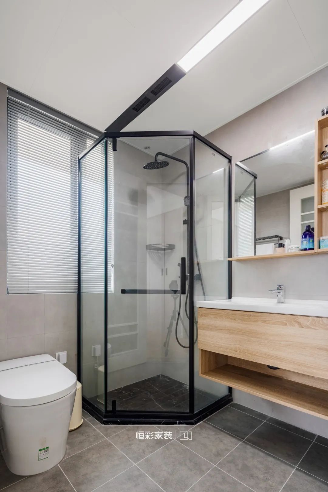 卫生间的设计以同样以原木+白为主色调,营造出一种沉稳温暖的氛围。大品牌卫浴满足日常生活的功能需求,又彰显了对细节的关注和品质的追求。