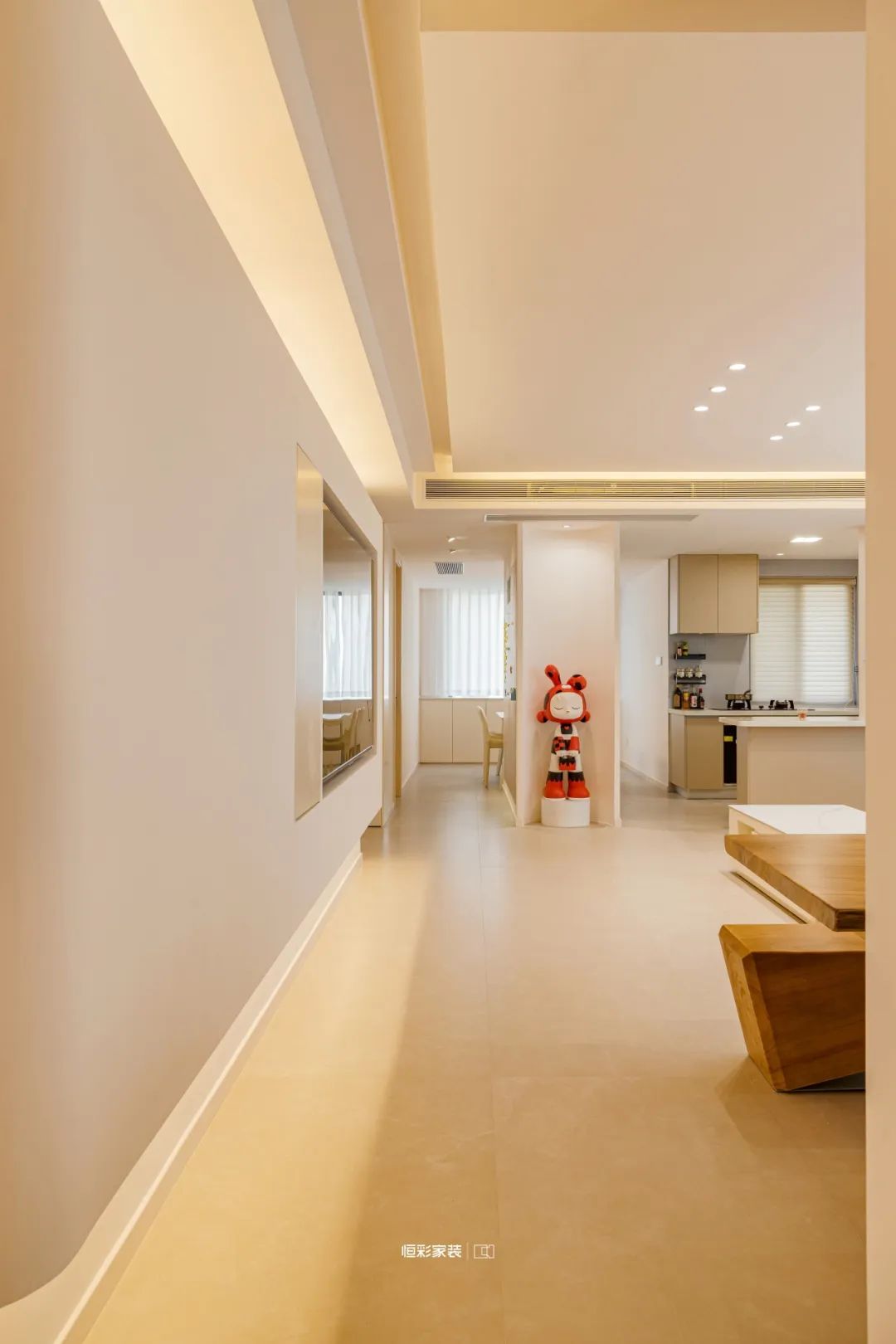 从玄关至客厅过渡区域放置泡泡玛特大型手办,客厅氛围感满满。