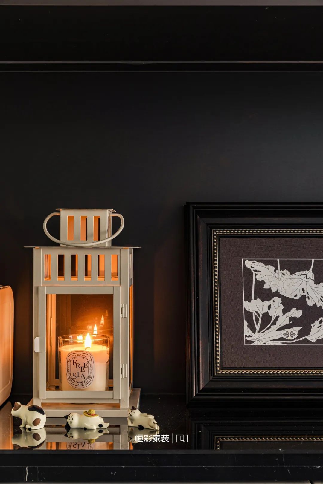 餐厨区宛若一幅泼墨山水,仿佛能听到墨色在宣纸上缓缓渲染的声音。黑白色彩纯粹,大胆挥洒出一幅法式与古典交融的写意画卷。