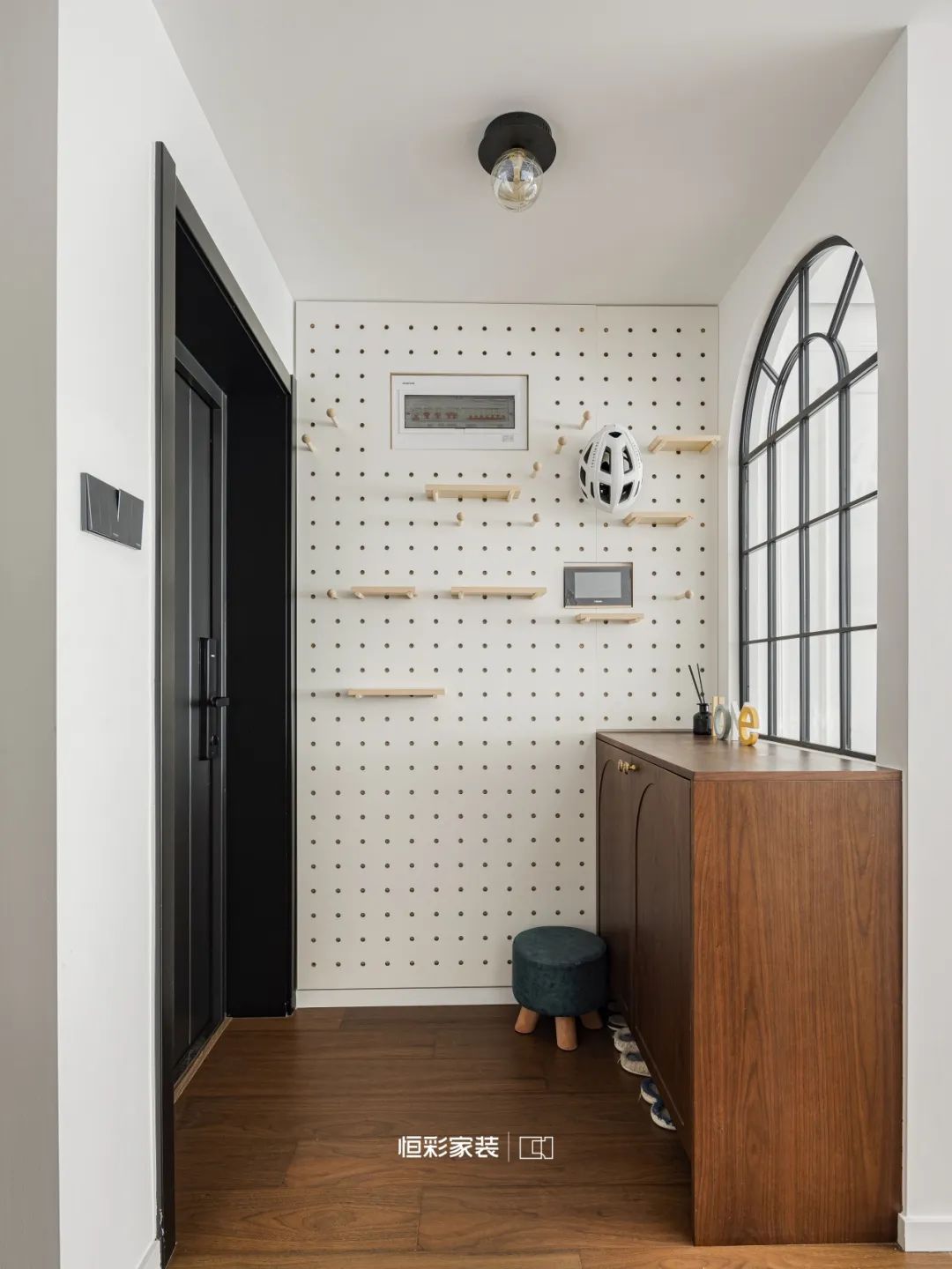 轻描淡写却将玄关幻化为一片奇境。拱形窗宛若时光之门,将过往幽影轻轻映照,旧梦重现。