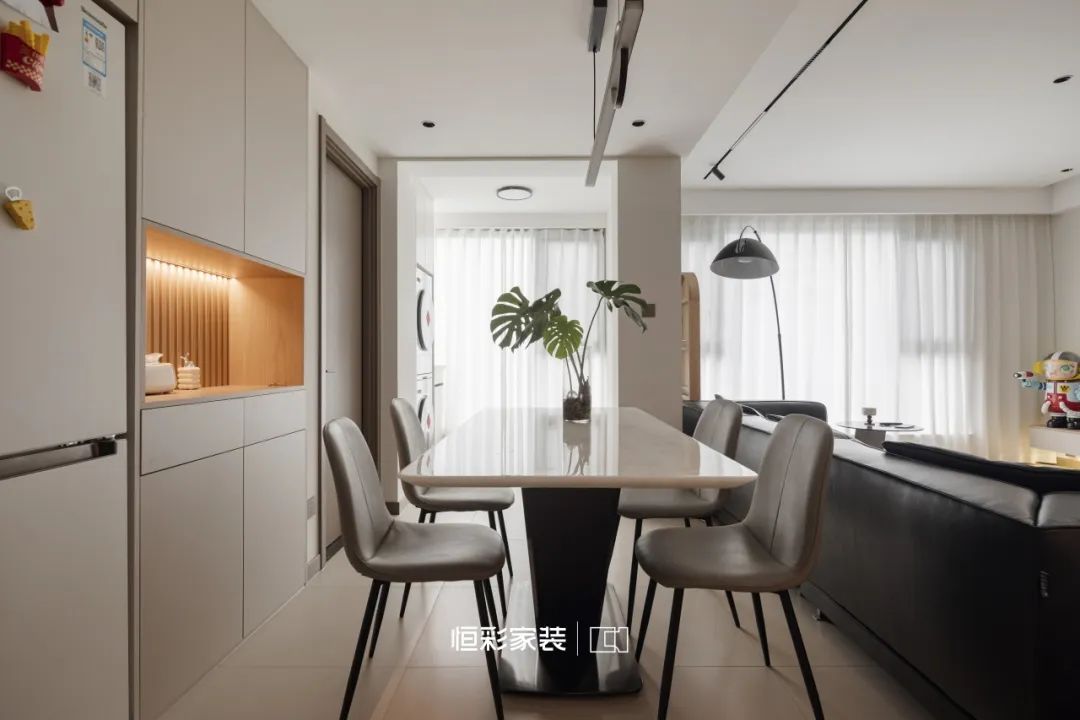 家是一幅用爱绘制的画卷,餐厅便是这画卷中最温暖的一笔。白色餐桌铺就一片简约底色,浅咖餐椅唯美柔和,围坐于餐桌四周承载着家的烟火。