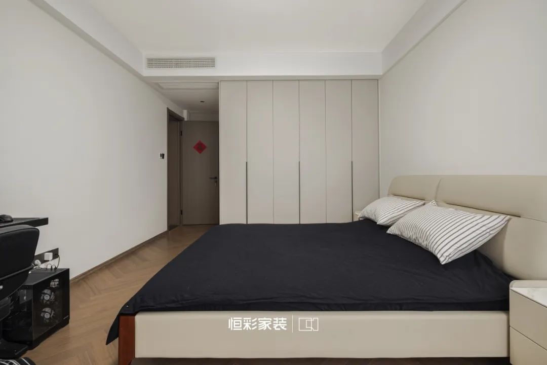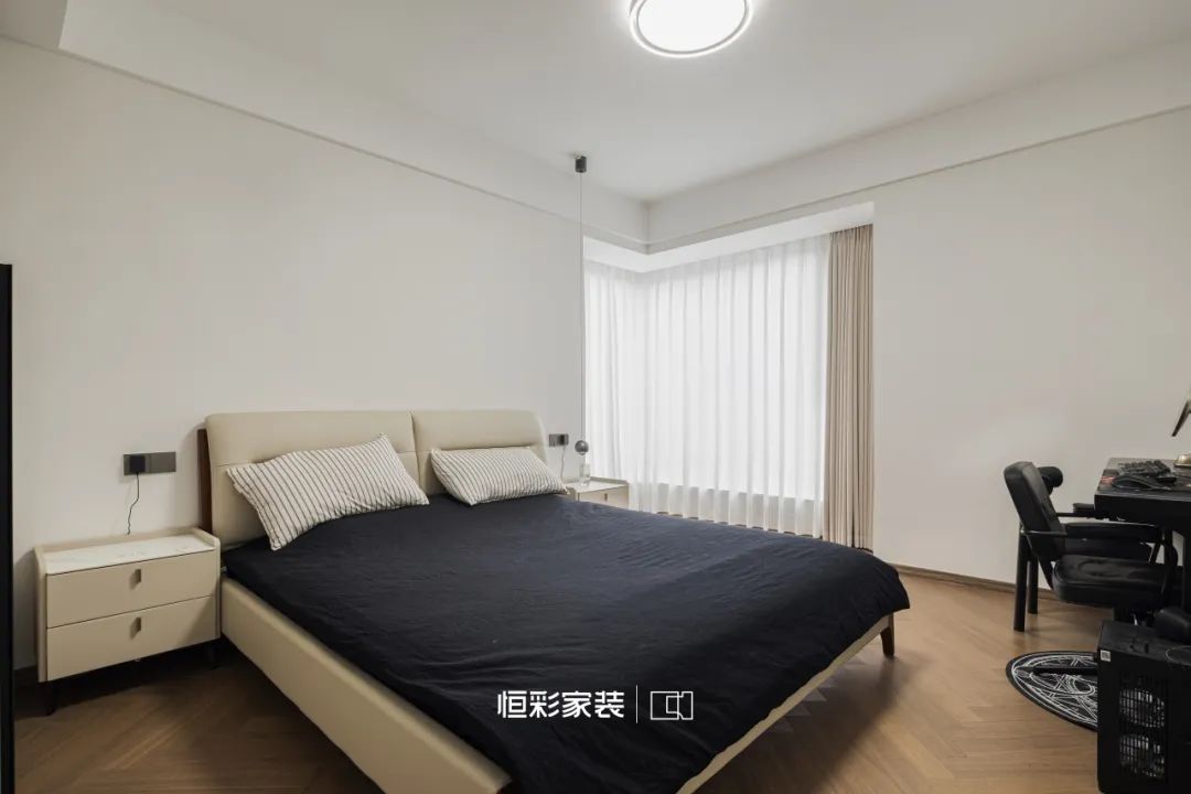 淡墨轻烟的晨光里,灰与白像是岁月静好时的一抹淡然,润物无声,心绪柔和成诗。主卧以阳台为画框,揽入一方宁静,淡烟疏雨只余最纯粹的致远。
