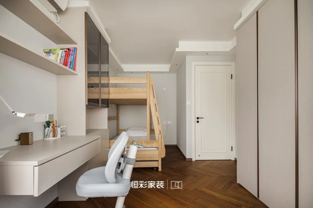 原木高架床轻柔托起孩子的童年,枕星河入梦,与梦中的伙伴一起,遨游在无边的幻想国度。学习桌安然伫立,陪伴孩子四季,见证成长的每一刻。