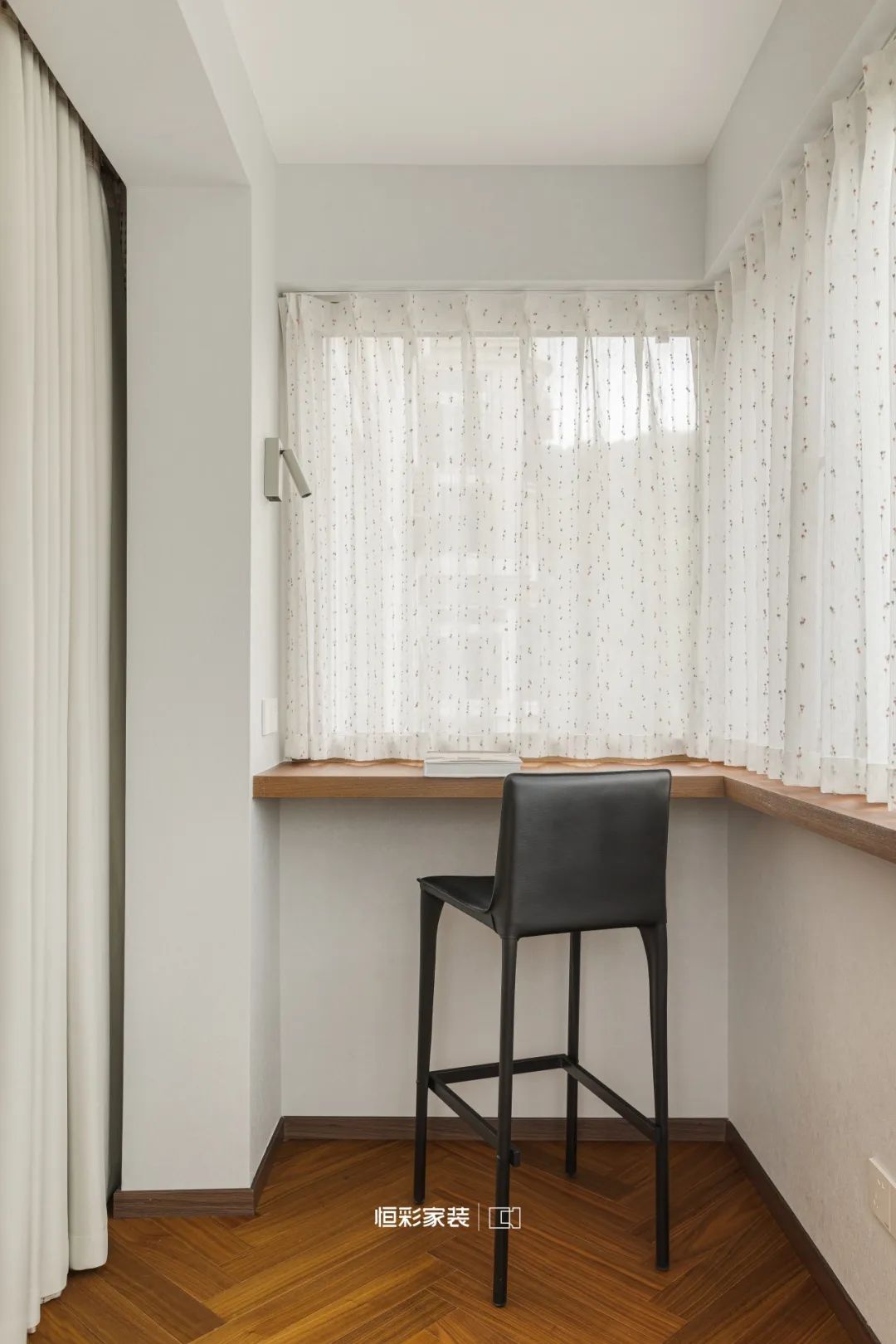 卧室一隅细腻雕琢成读书角,藏匿日常喧嚣,每一本书都是一段旅程,每一行文字都承载梦想与远方。焦糖地板像是大地的画布,每一步都在诗行间跳跃。
