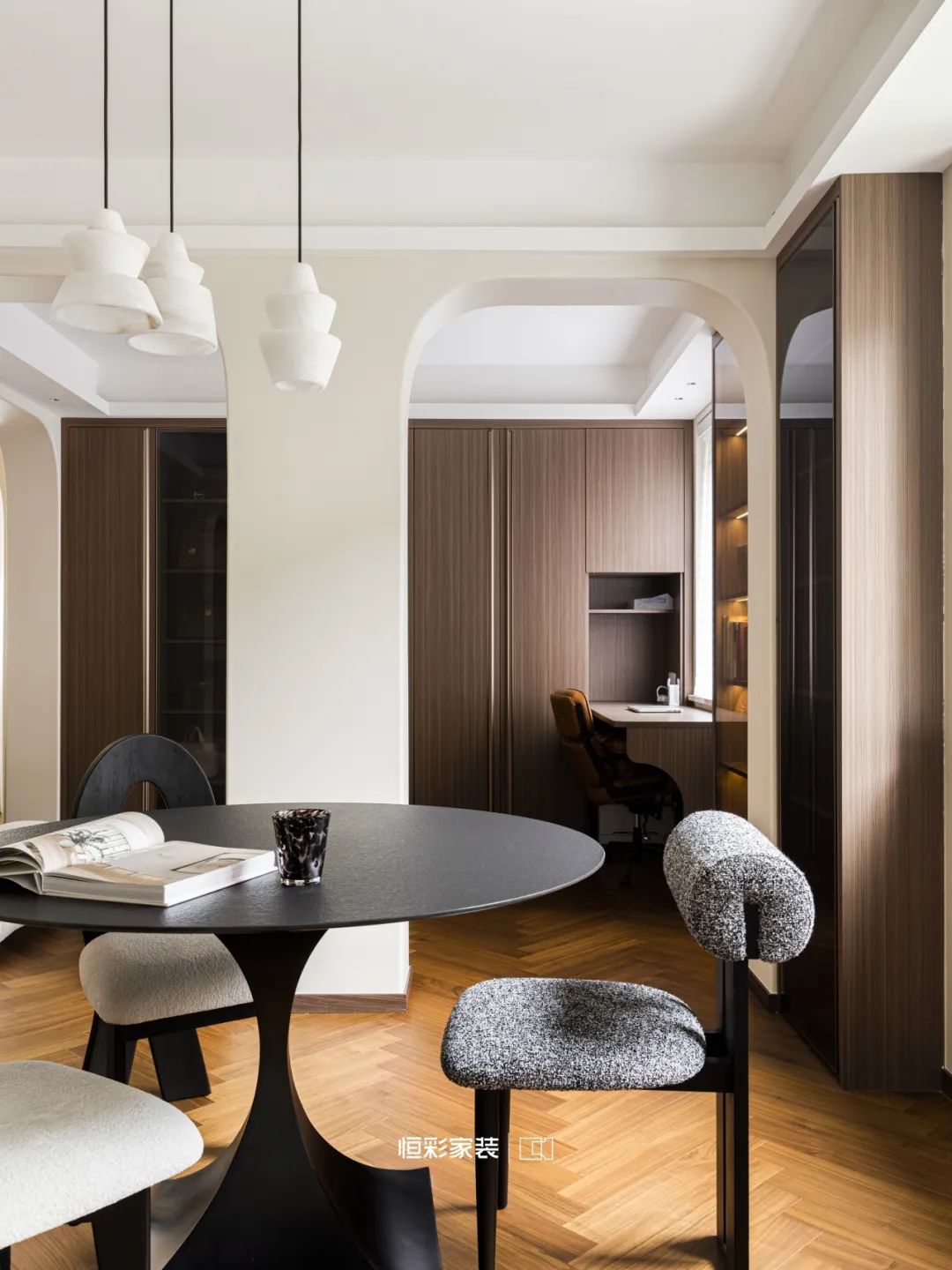 客厅后暗藏玄机,一桌一椅一扇窗,一灯一人一卷书,到不了的远方,文字带你抵达。向阳而生,在一场永不落幕的晨曦中,喧嚣散去,只剩光与木的低语。