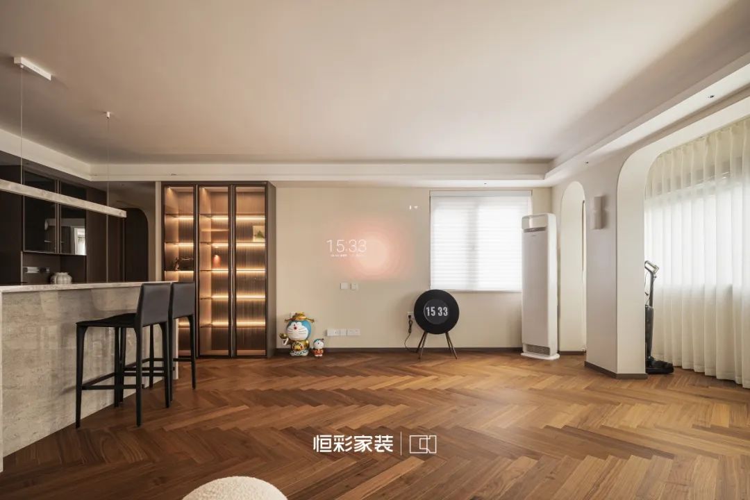 客厅无主灯,视线穿梭虚与实的边界,温柔拂去尘世喧嚣,从前尘往事中捧出暖意,时光此间流淌,却不惊扰这片恬静,只余一丝若有若无的柔光,轻轻点染岁月底色。