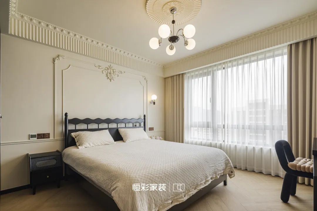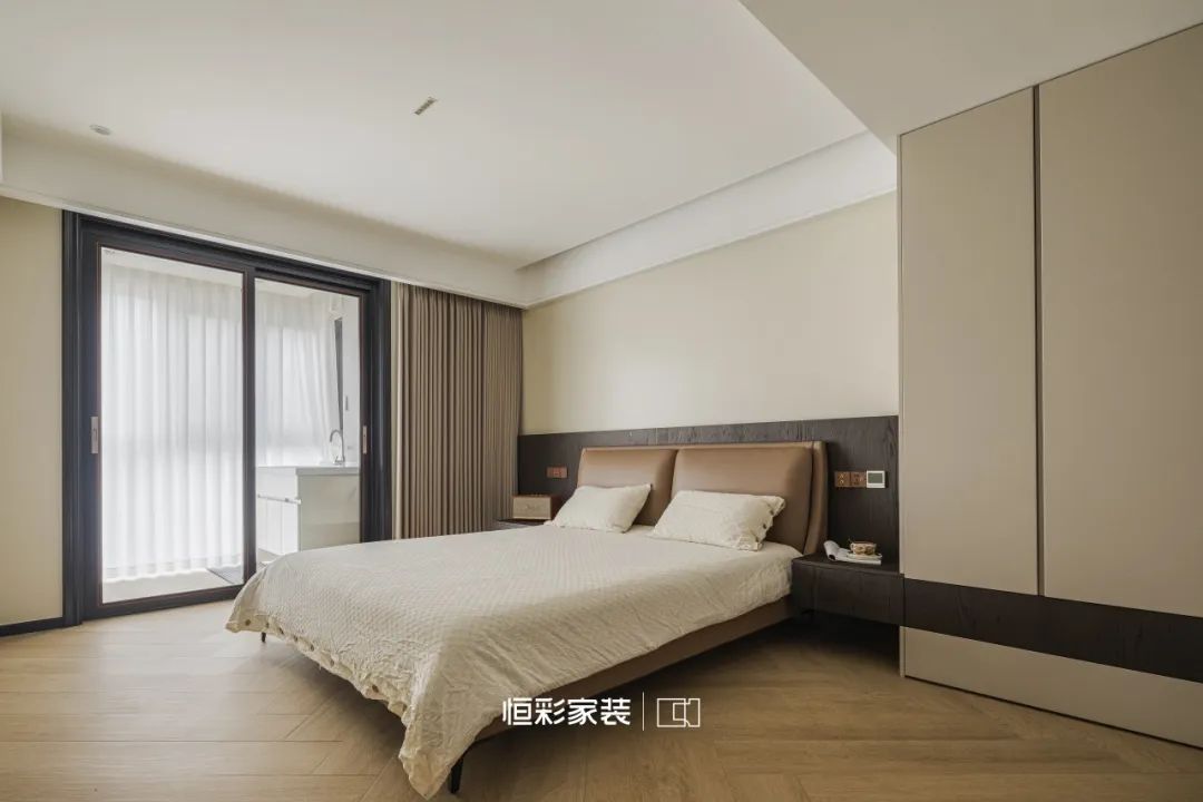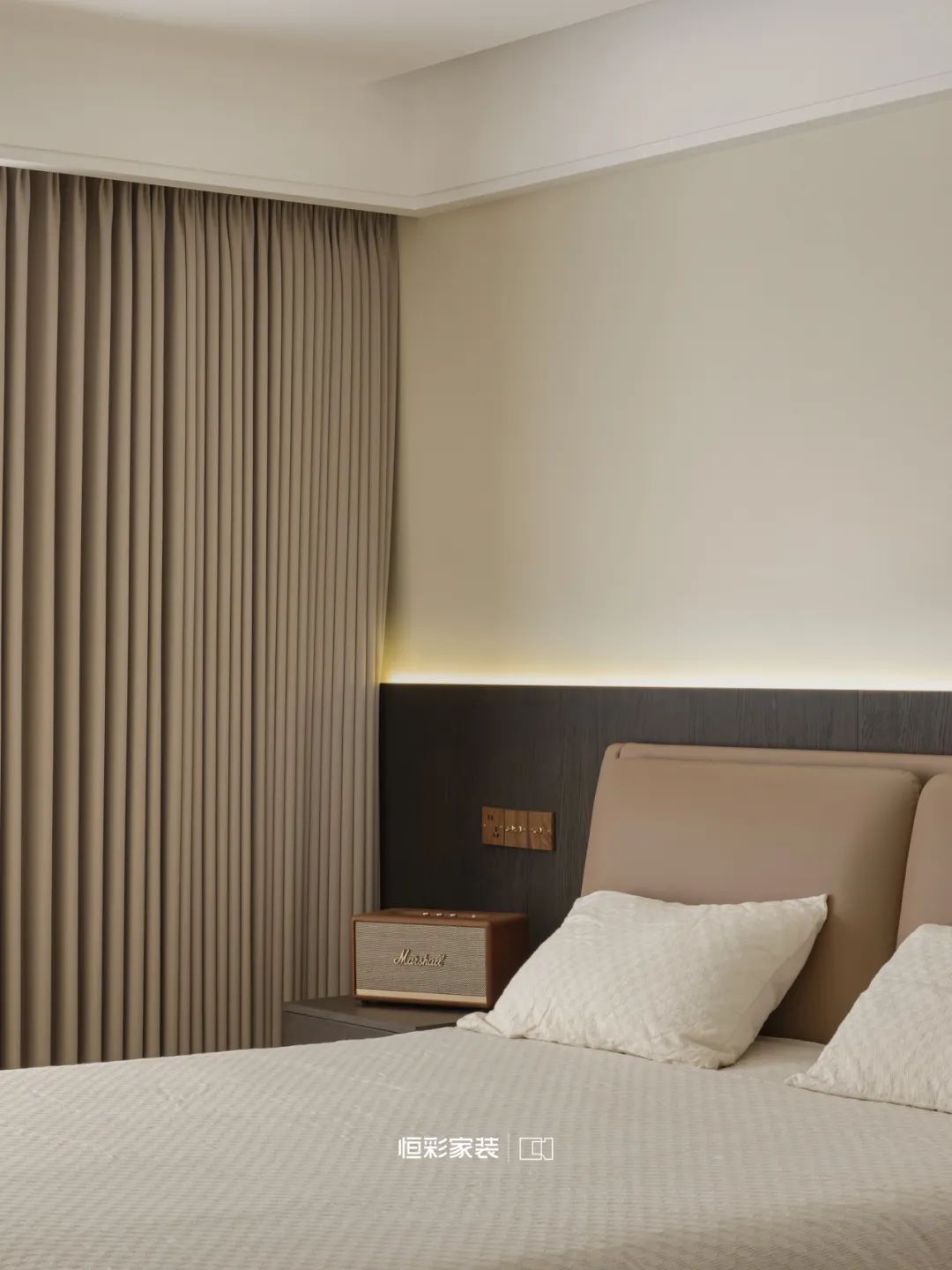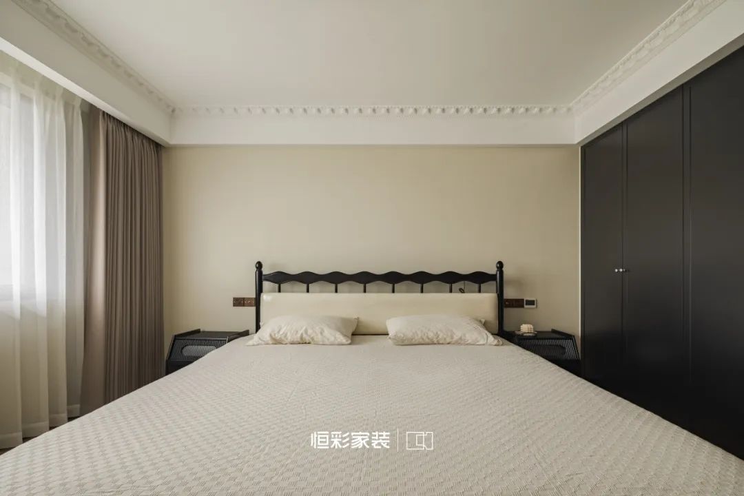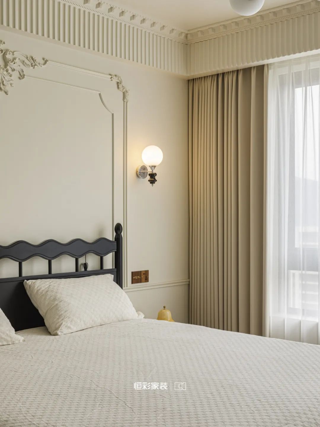奶油感满满的床品、复古窗帘,每个角落都流露出温柔的浪漫风情。一侧衣柜轮廓深邃,虚实间勾勒出梦的边缘。焦糖色木地板,这颜值不要太好看,奶油氛围全部拿捏!