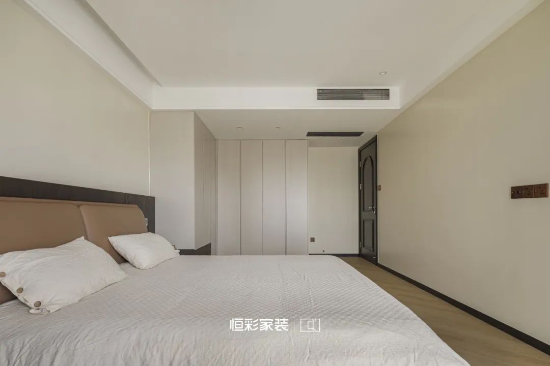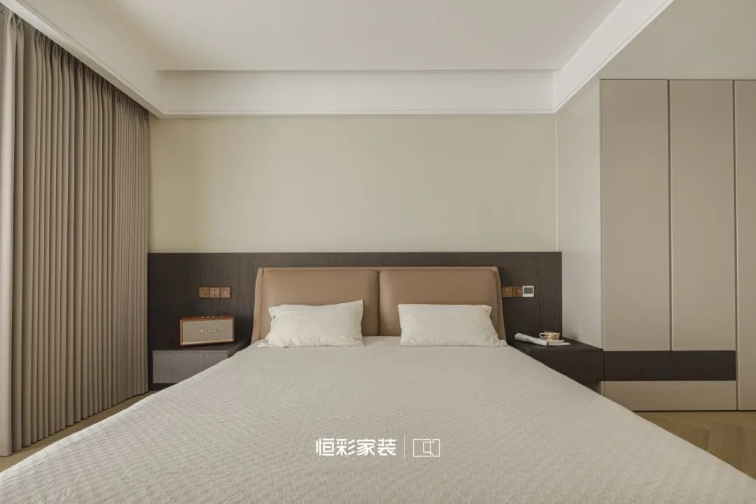衣柜沿墙而立,仿佛时间的画卷,在光影中徐徐展开。床头柜与衣柜收纳柜一体,它们不是静止的家具,而是次卧流动的风景,编织属于自己的梦。