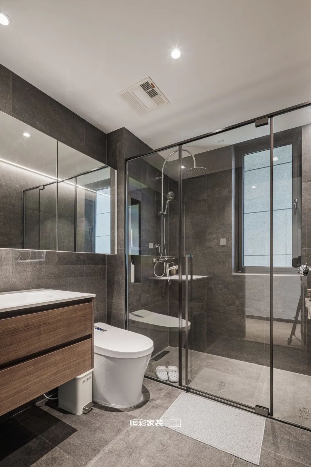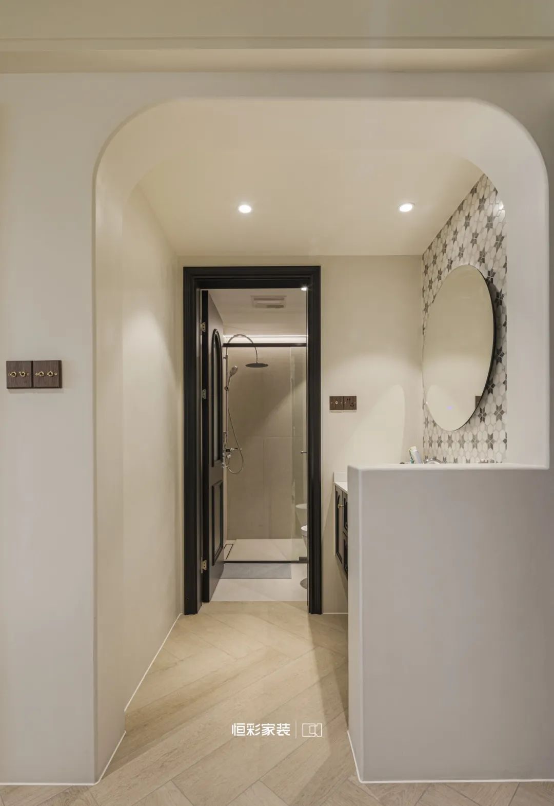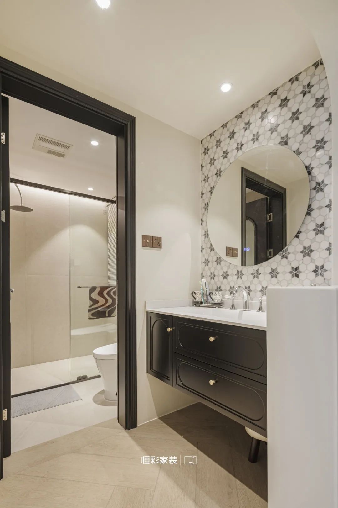 新家保留两个卫生间,将法式风进行到底,颜值超高,更为精致。黑金浴室柜与浴室镜交相辉映,仿佛时间的瑰宝,闪烁岁月的沉淀,映射光影的绝美。
