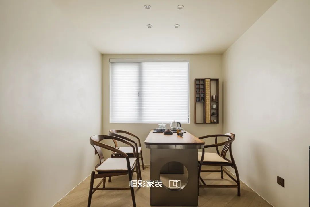 次卧作为长辈房使用,简单的微水泥像是被时光轻抚过的画布,铺上一层温馨的底色,咖色墙裙抚平每一缕思绪,不显尘世喧嚣。