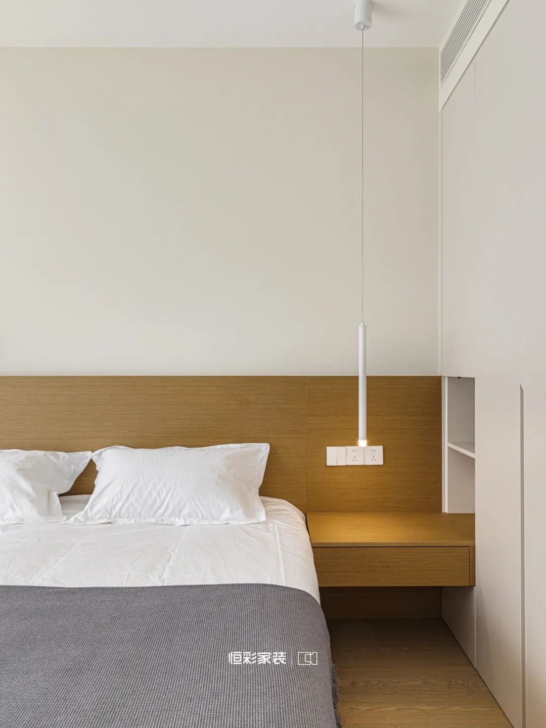 磁吸轨道灯引领视线穿梭虚与实的边界,收纳柜与木饰面在这里相遇,它们是时间的匠人,朦胧的美遥不可及,却又触手可及。