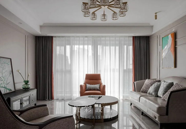 因此整个客厅采用米灰调的配色,静谧而温婉,坚定而有力。