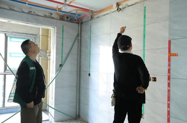 泥工工程主要分为防水工程和铺贴工程,验收标准也有所不同,崔工和蒋总共同检查这两个工程,并为现场的客户详细讲解了工程中包含的工艺。