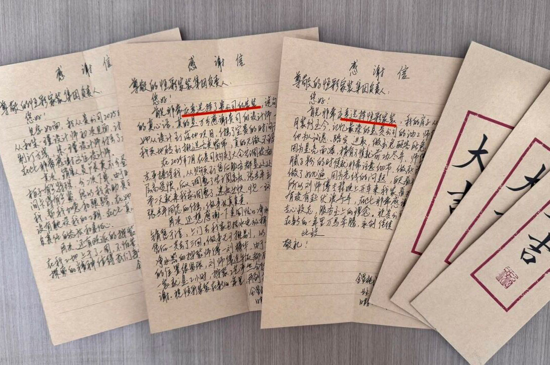 在恒彩家装,我们总说“服务的终点,是业主的满意”,而这份满意,有时会化作最质朴也最珍贵的认可。开年伊始,恒彩便收到一份特别的“礼物”—— 来自金星桃源居业主的三封亲笔感谢信,没有华丽辞藻,却字字滚烫、句句真诚。