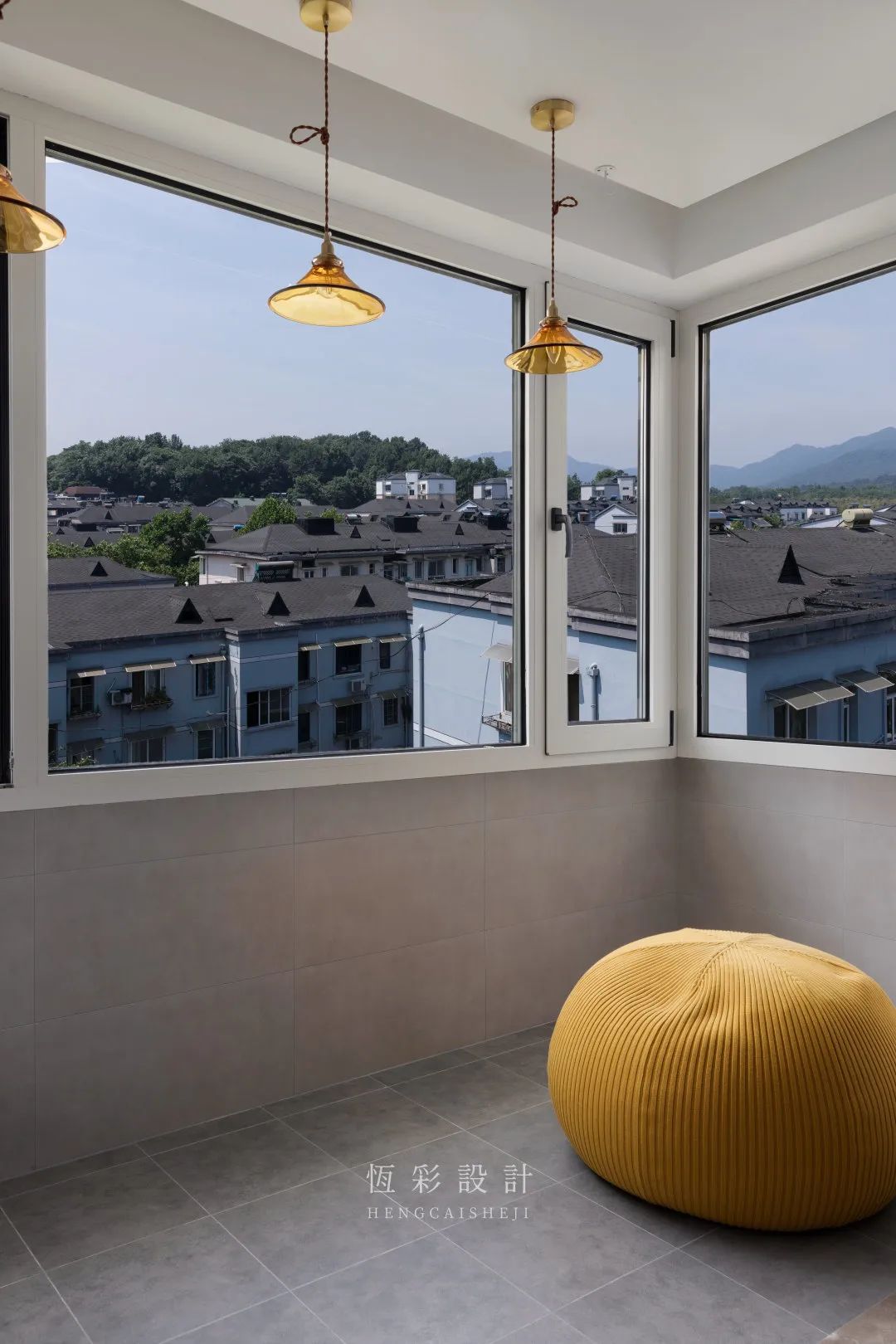 因为本案为顶楼视野佳,于是将其设计为休闲区,蓝天、白云、山景一览无余,这也成了业主本人偏爱的一隅。