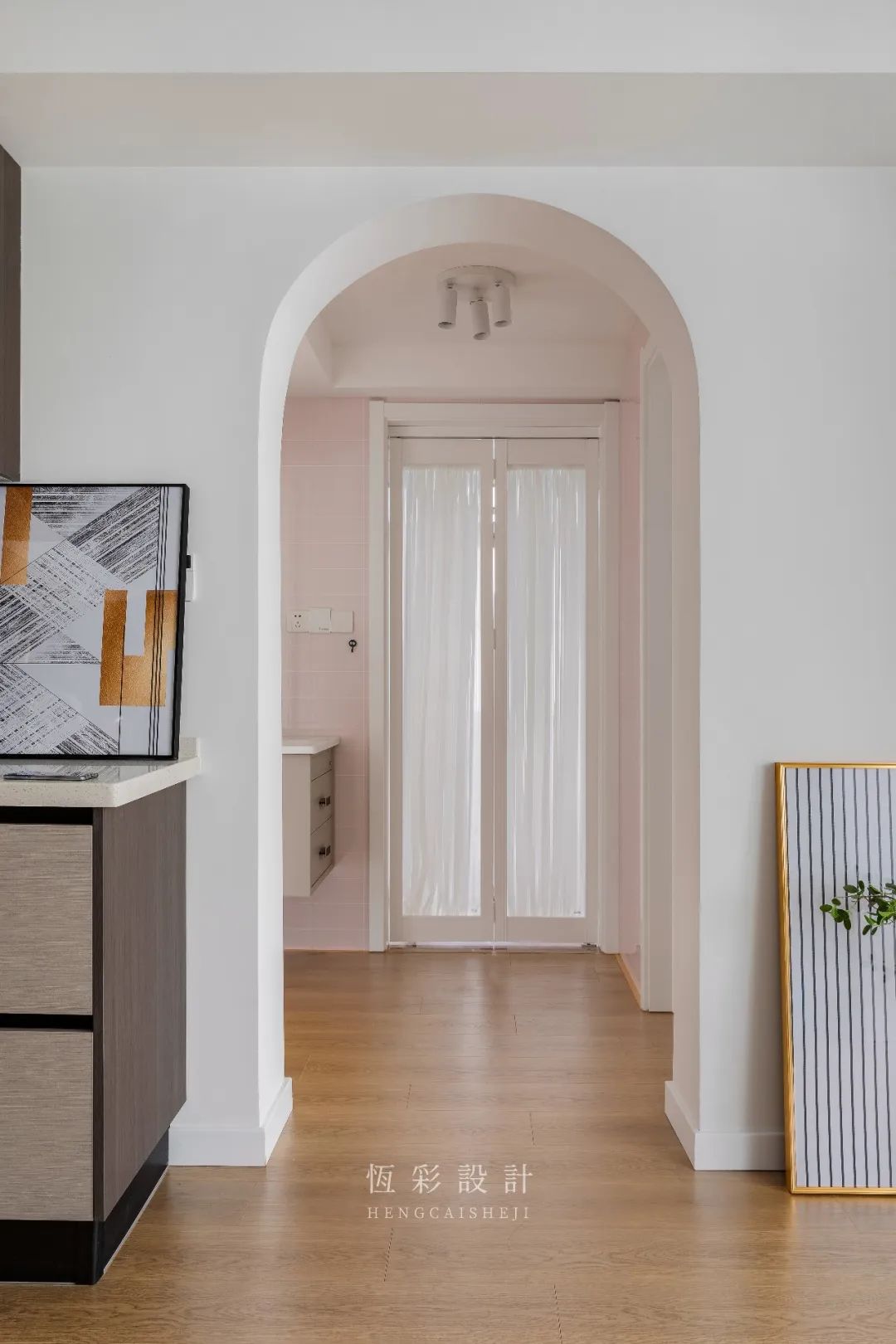 过道木地板延伸,选择拱门做空间过渡,增加美学遐想。