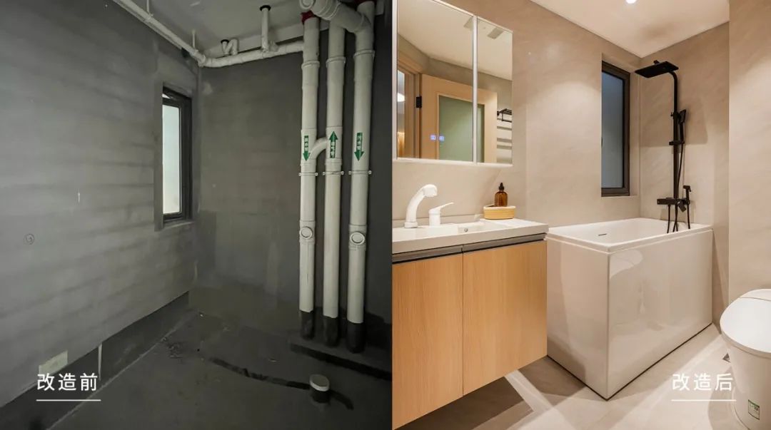 一体式的主卫,洗漱区、浴缸区、如厕区,功能分区更为明确。