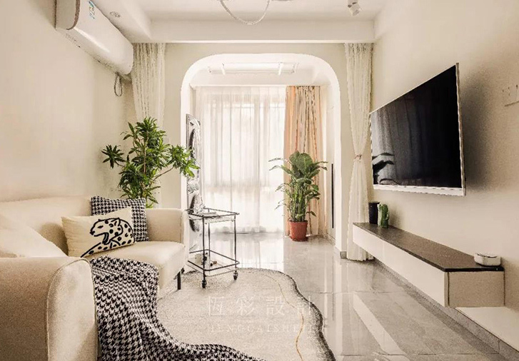 打通阳台包进客厅,设计拱门作过渡,增加艺术效果与仪式感。