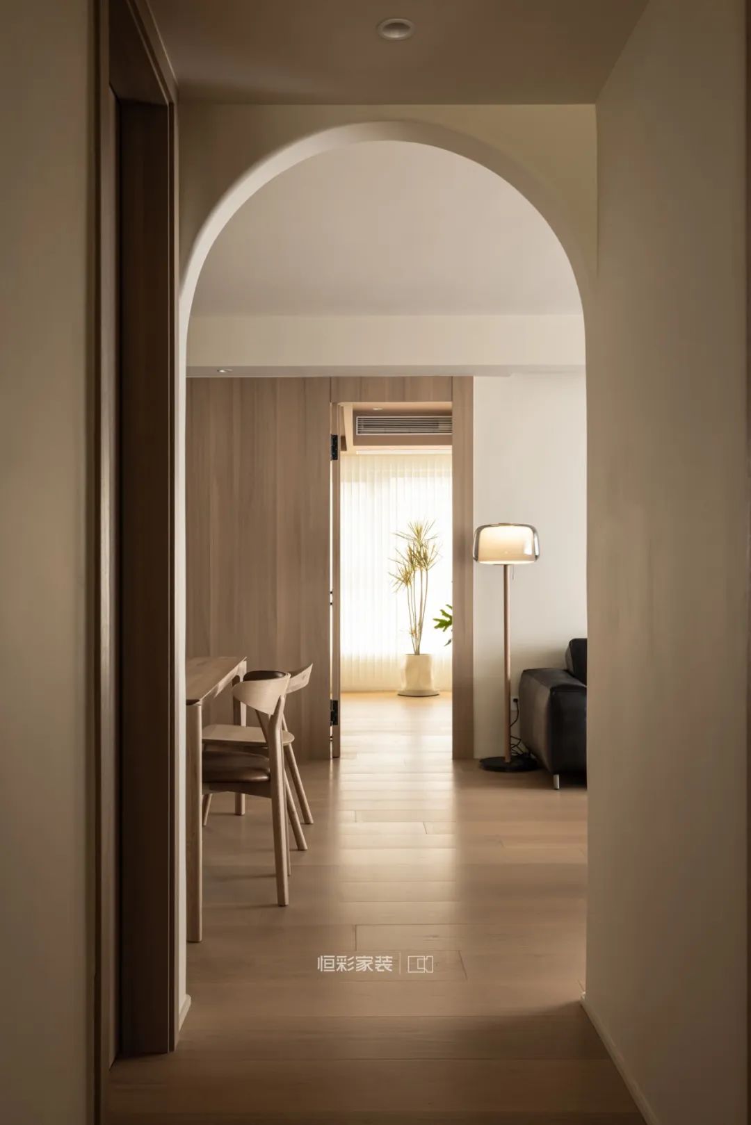 过道门洞全部做了拱形设计,空间更加柔和。