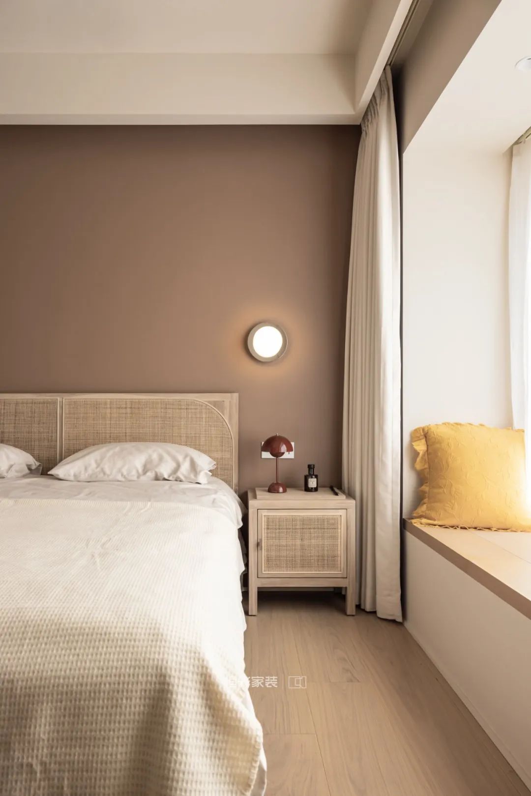 卧室的弧形门洞设计和客厅公共空间的弧形相呼应,增加了空间的联动性。