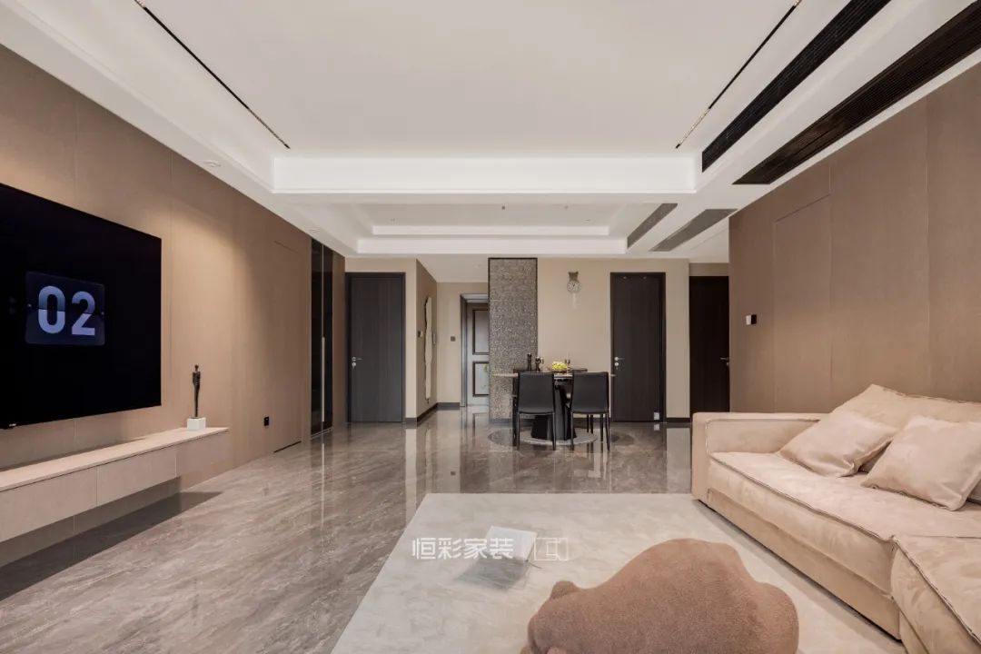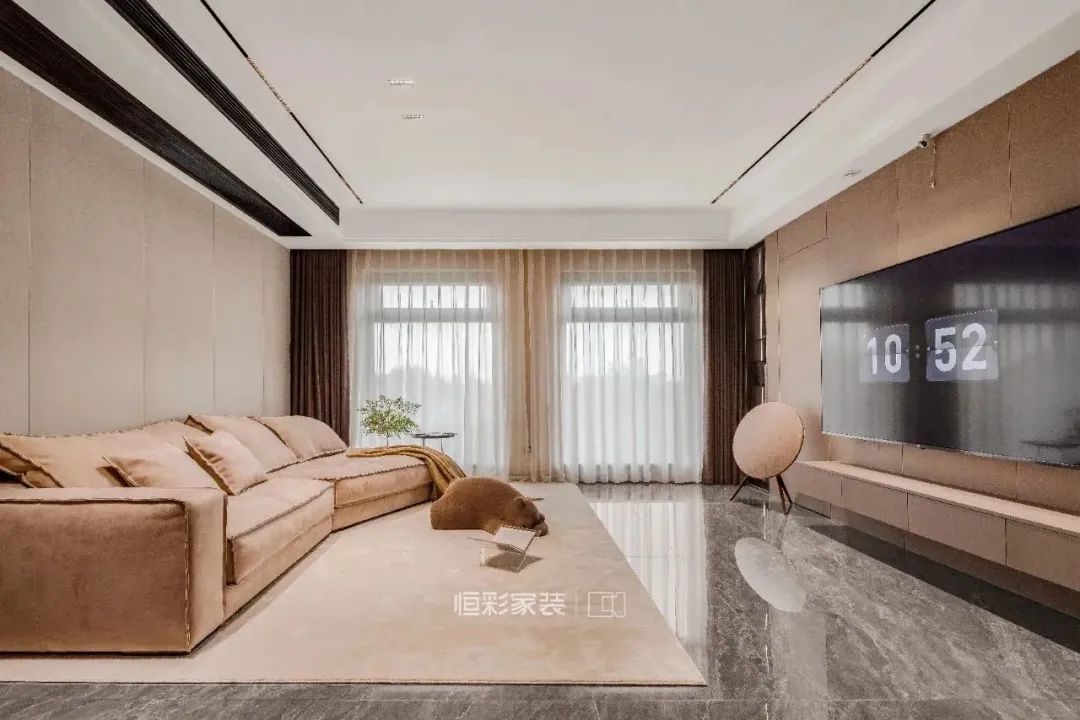 客厅顶面大面积留白,避免压抑,打造现代家居的平整、简约感。