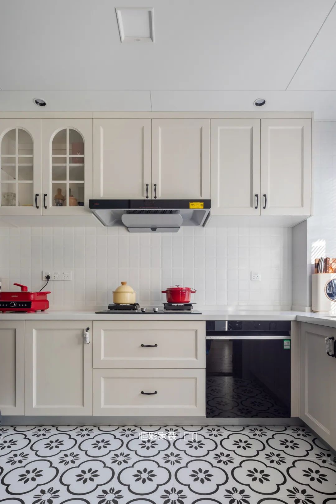 中厨满足生活使用需求,拼花小砖、白色橱柜又兼具超高颜值,奶呼呼的格调令人心动。