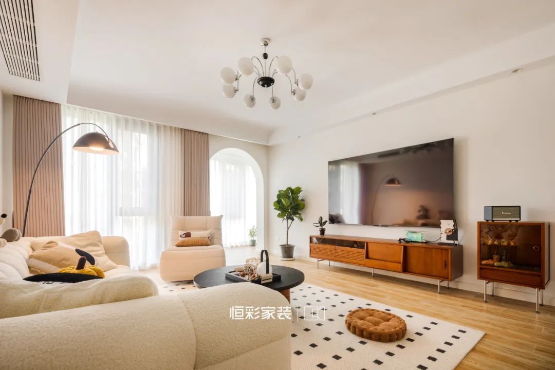 而弧形元素则是复古感的重要来源,中古调的小家具则进一步叠加了复古情调,共同勾勒出理想家的模样。
