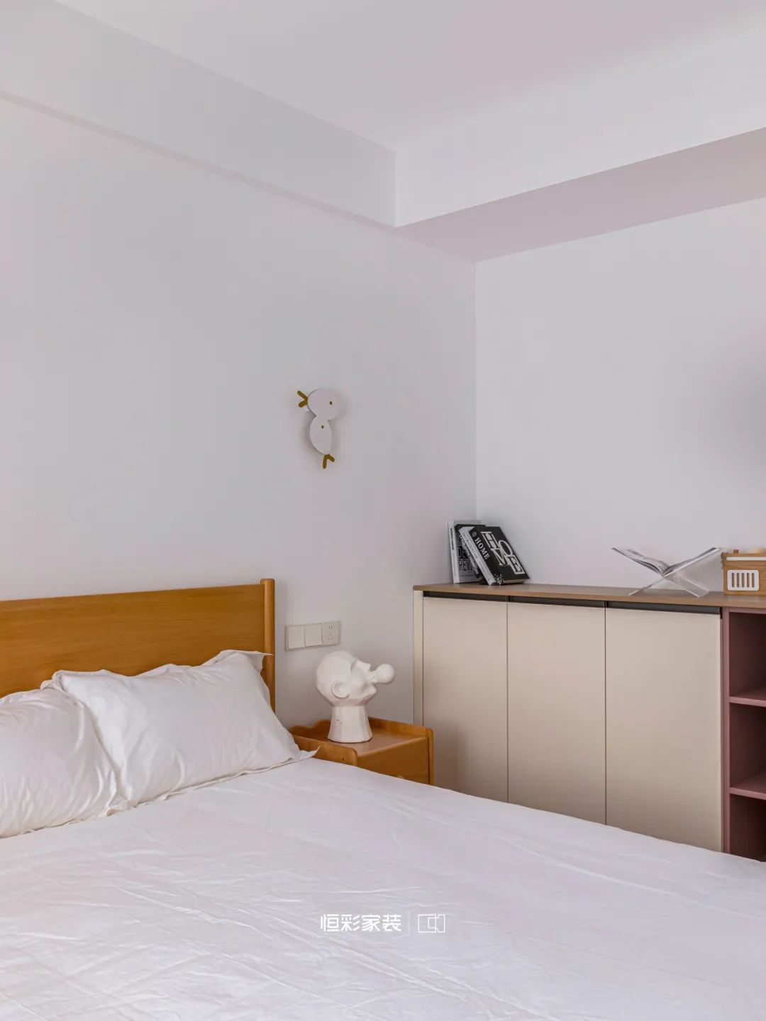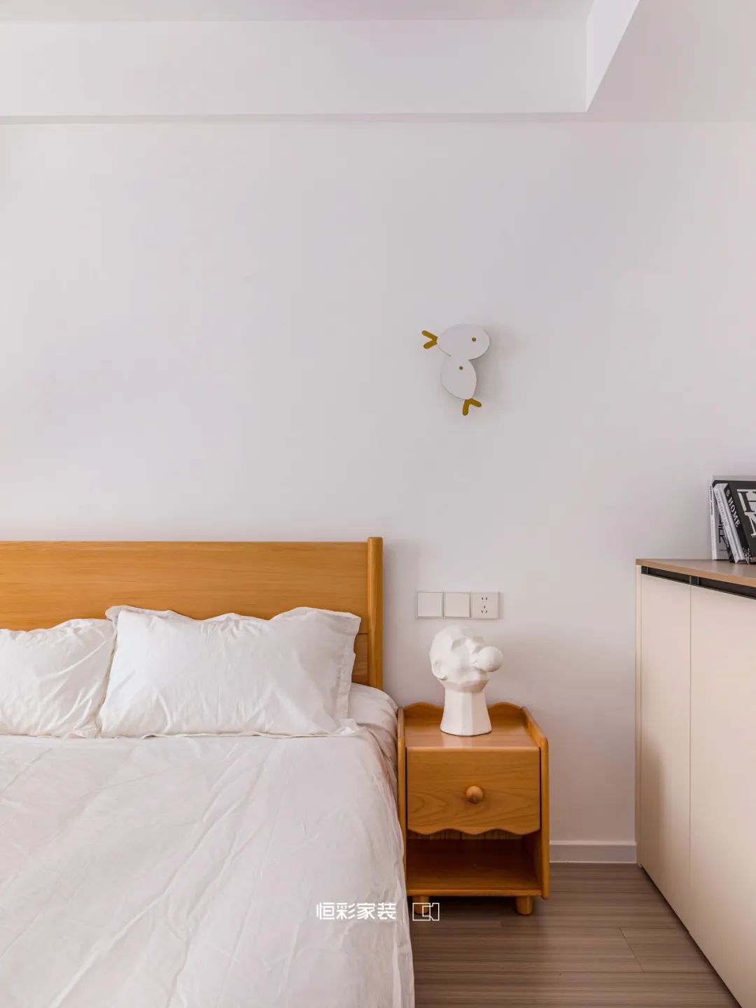 实木床头柜与艺术摆件,仿佛时光的指尖轻柔抚过,很简的质朴与奶油的柔和完美融合,化作岁月低语。