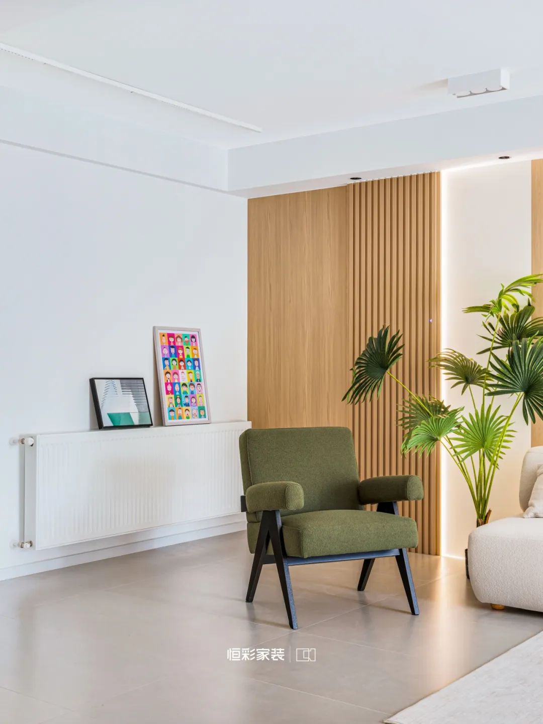 客厅每个角落都是风景,墨绿单人沙发如一缕流光熠熠生辉,又添几分瑰丽的诗意。奶油很简风YYDS,我愿称之为装修界的白月光~