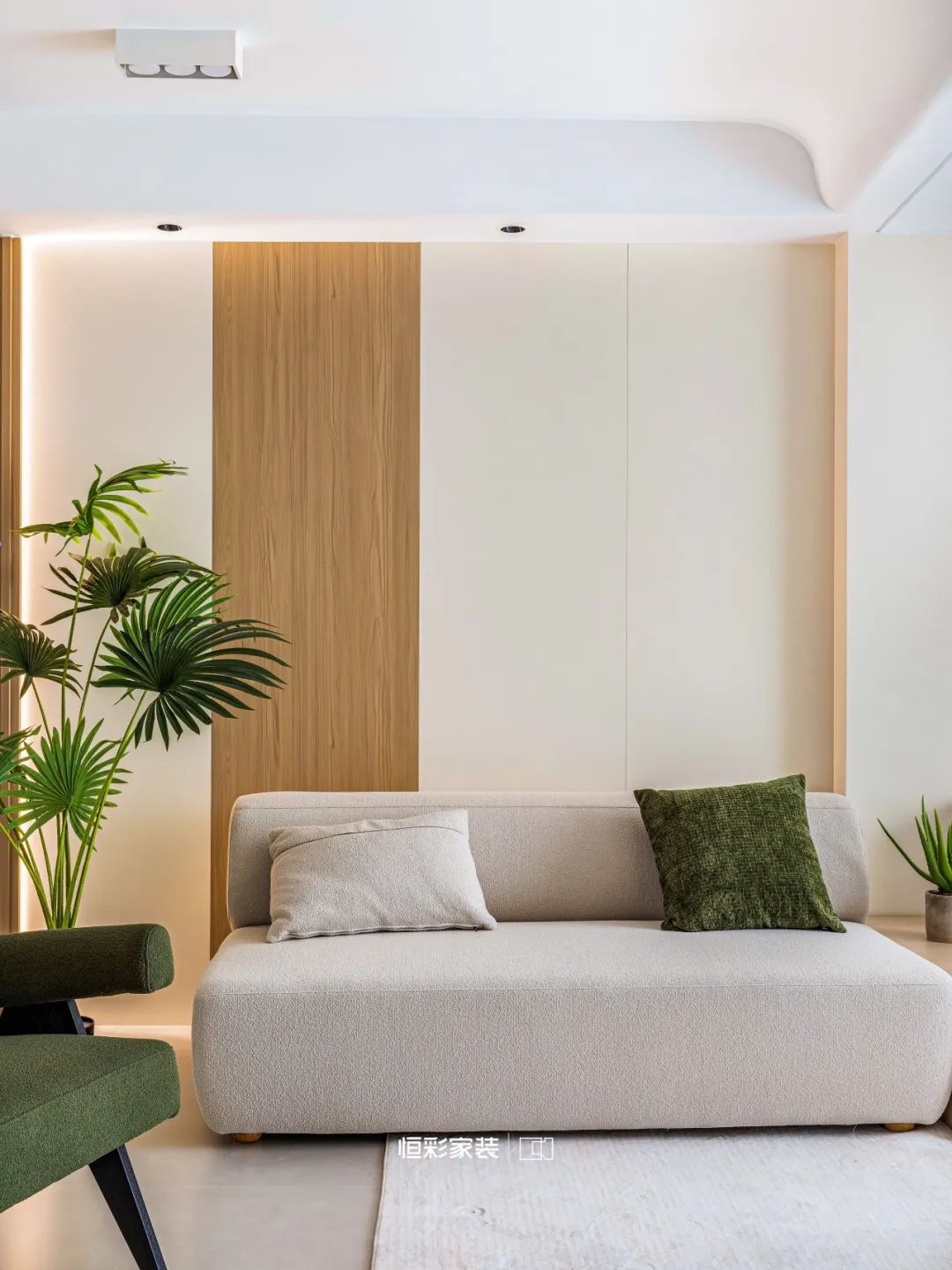 一绿一白,大自然的画笔在室内轻轻挥洒,绘出一片林间景致,这一抹绿仿佛是林间深处的一汪清泉,悄无声息漫过奶油很简。