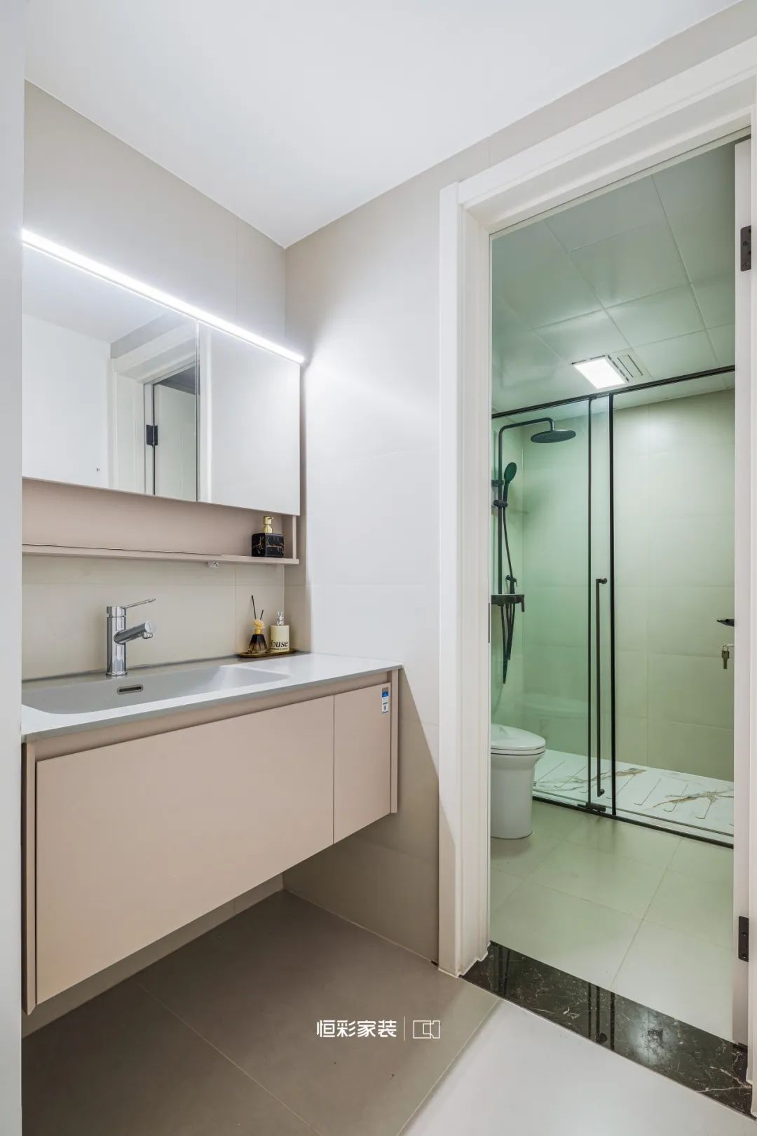 新家两处卫生间如云海般飘渺恬静,无垠白色中珍藏时光碎片,萦绕心间,久久不散。白色陶瓷洗手池,仿佛一块未经雕琢的璞玉,又似晨曦初露的微光,星辰洒落凡间。