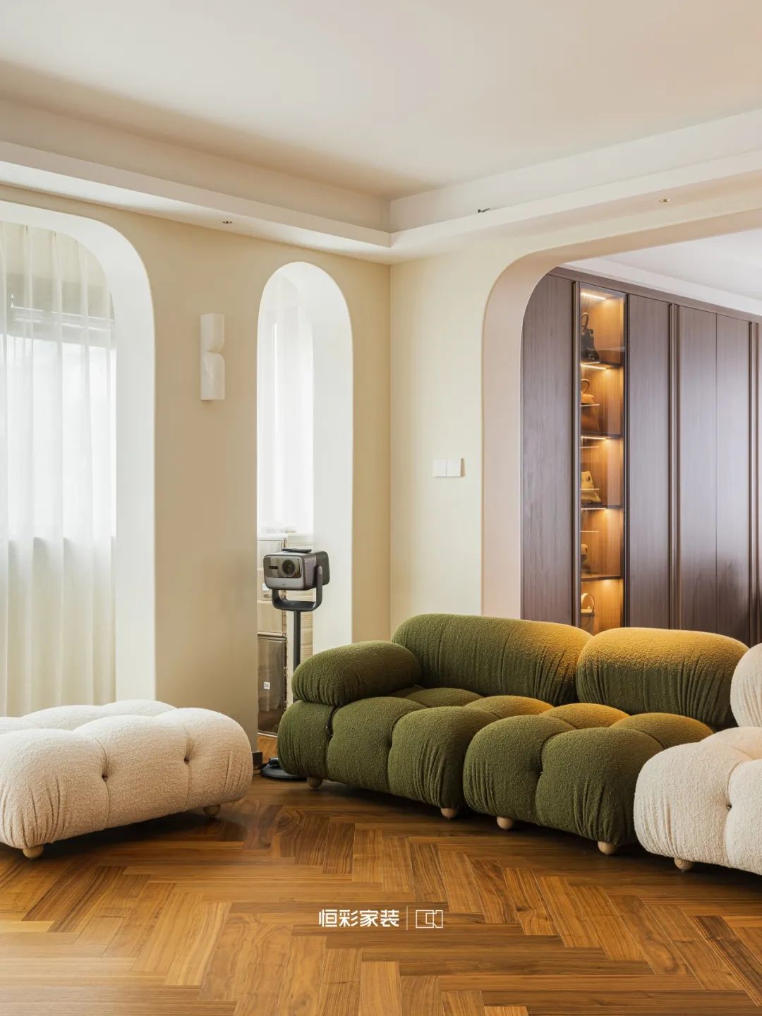 客厅无主灯,视线穿梭虚与实的边界,温柔拂去尘世喧嚣,从前尘往事中捧出暖意,时光此间流淌,却不惊扰这片恬静,只余一丝若有若无的柔光,轻轻点染岁月底色。