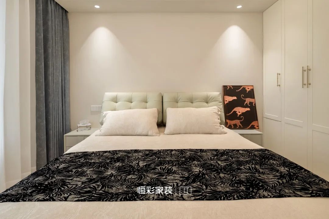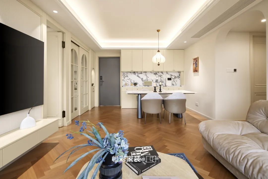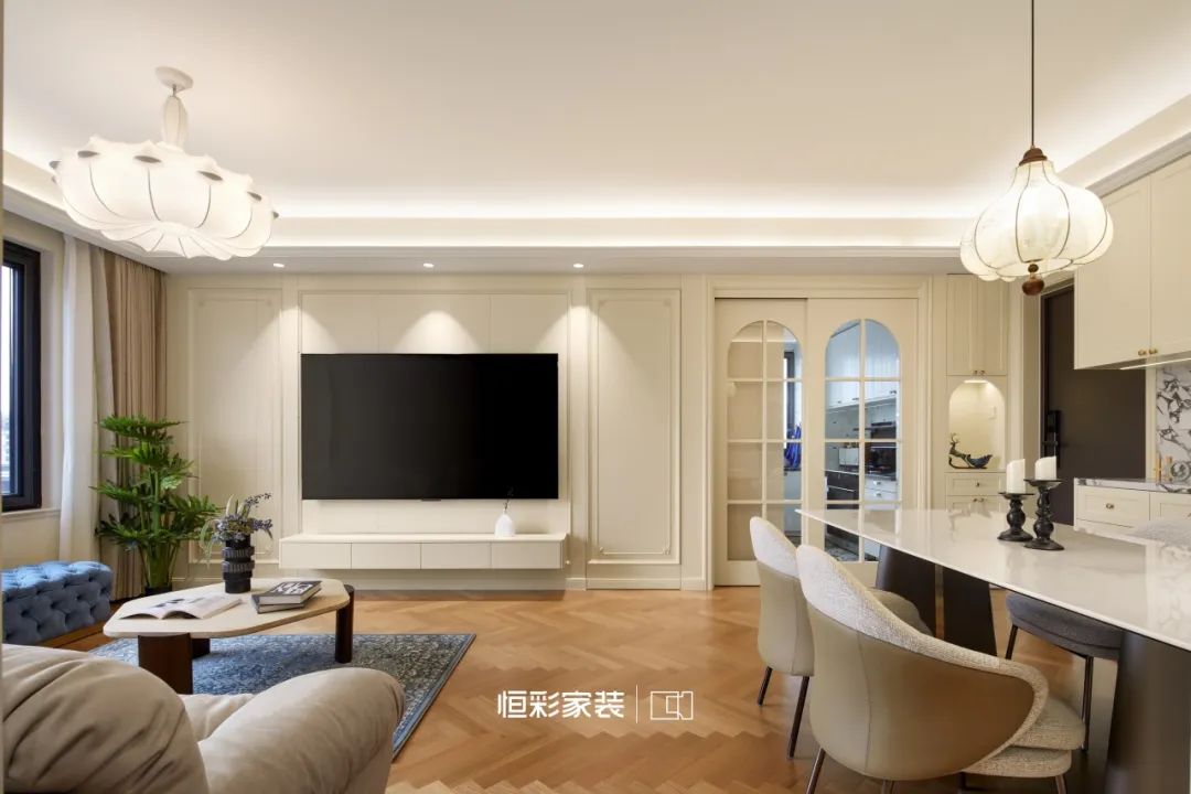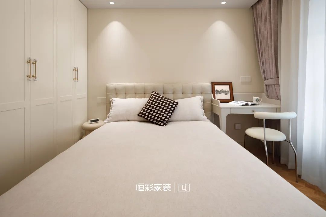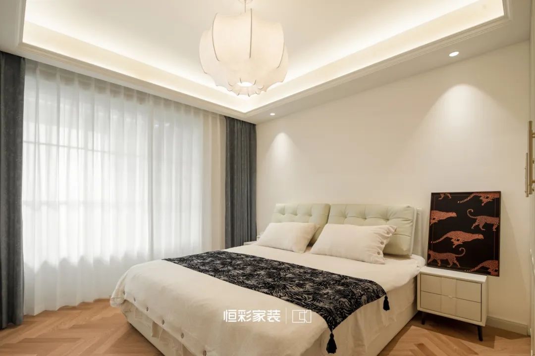 背景墙与隐形门织就虚无梦境,轴线对称石膏线,仿佛古老卷轴,将法式风展现得淋漓尽致。