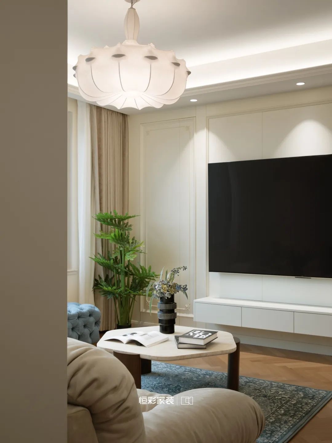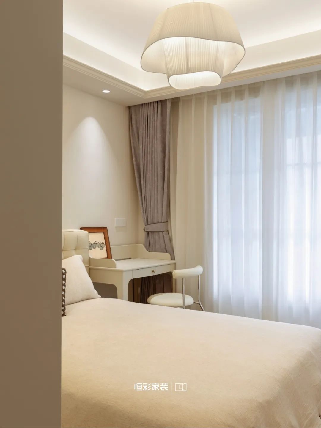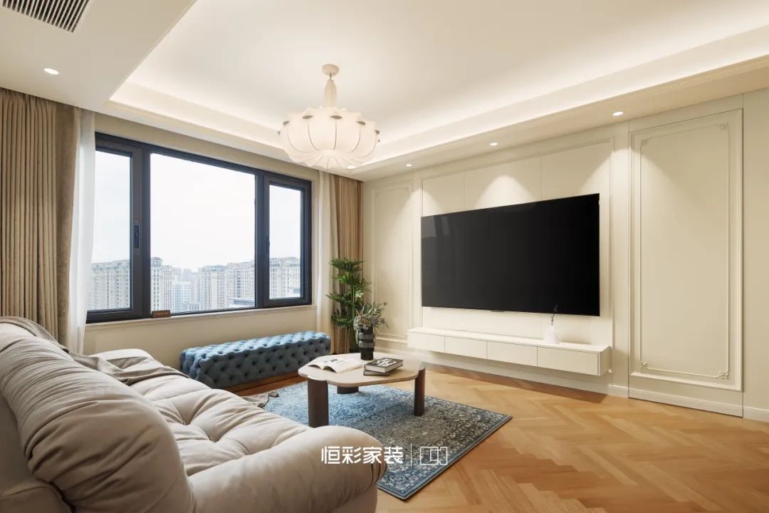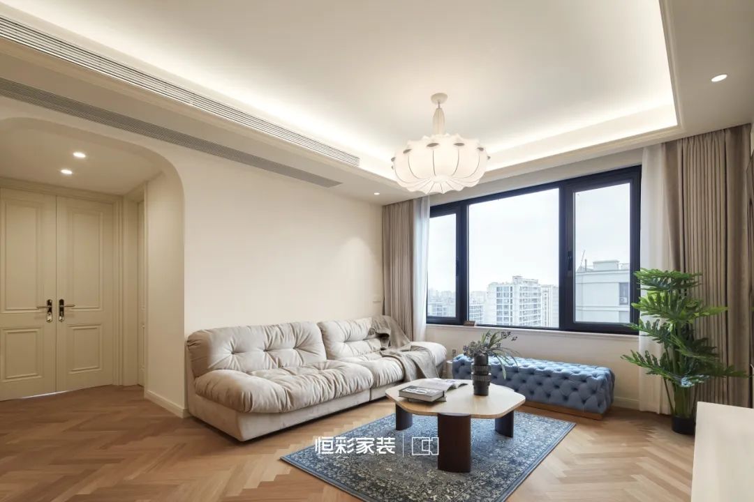 背景墙与隐形门织就虚无梦境,轴线对称石膏线,仿佛古老卷轴,将法式风展现得淋漓尽致。