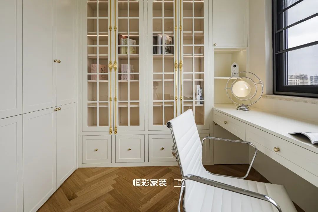 法式奶油收纳柜采用木板与玻璃门相间的形式,每一本书都是一段旅程,每一行文字都承载着梦想与远方。