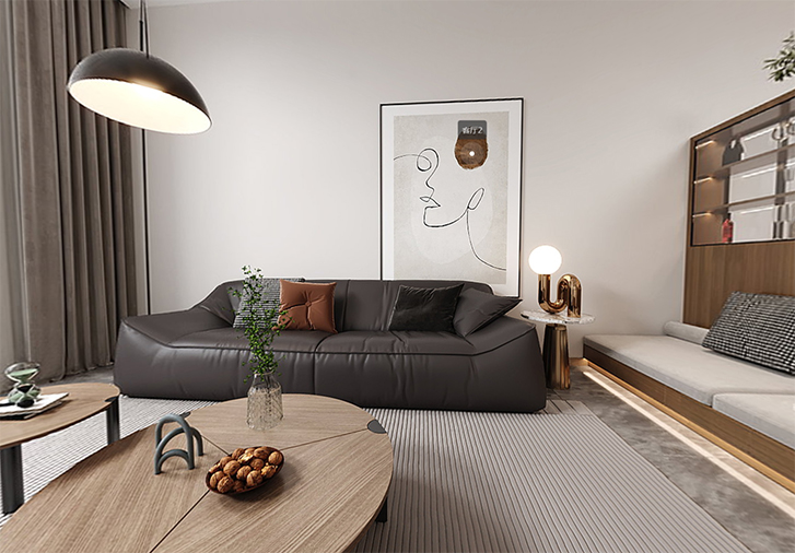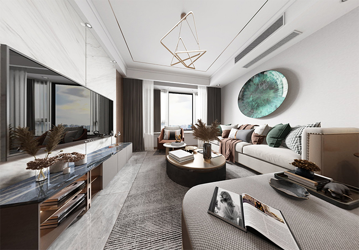 一尘不染素净澄明。用平静的心灵看世界,利用淡淡的家具布局把原有的空间净化,把气质和品位含蓄地表现出来……